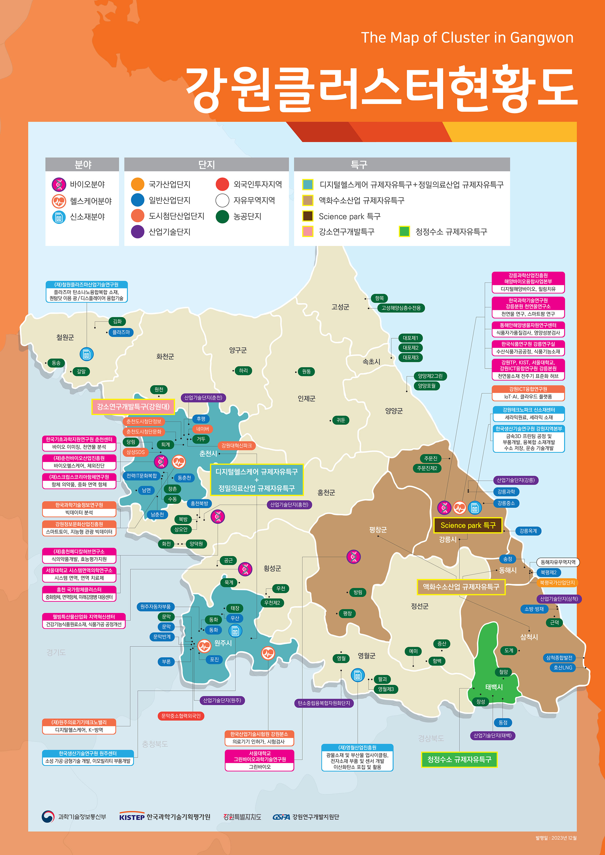 강릉시 구분 기관명 바이오분야 한국과학기술연구원 강릉분원 천연물연구소 한국식품연구원 강릉센터 동해안해양생물자원연구센터 강릉과학산업진흥원 해양바이오융합사업본부 헬스케어분야 강원ICT융합연구원 신소재분야 강원테크노파크 글로벌사업단(신소재센터) 한국생산기술연구원 강원기술실용화본부